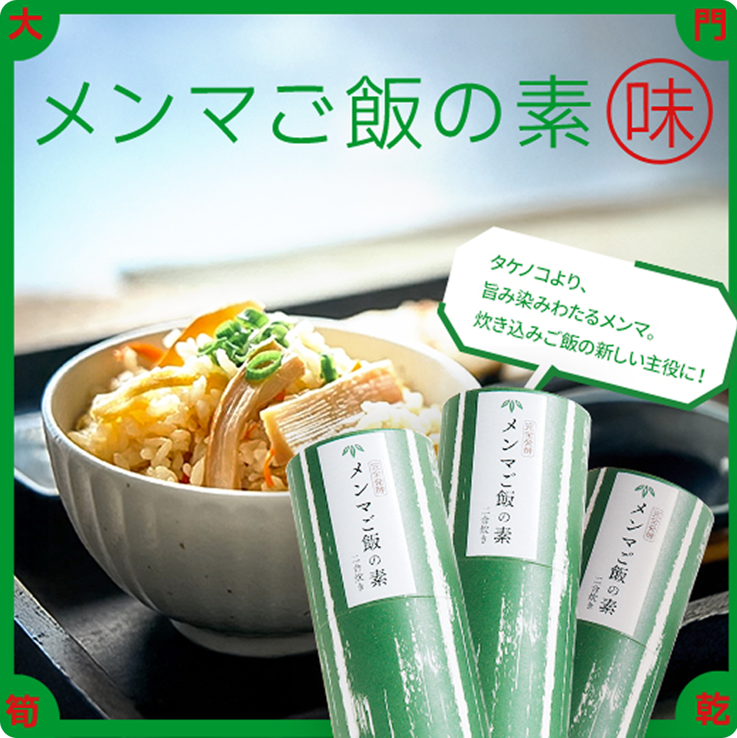 大好評のメンマご飯の素をギフトにも嬉しい竹筒パッケージで販売開始! 炊き込みメンマご飯の素(竹筒Ver.)